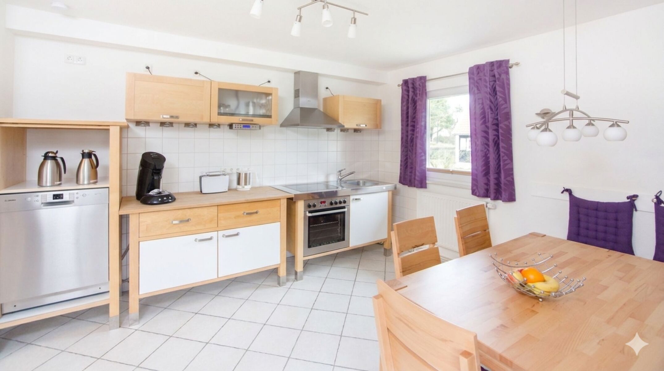 Genießt den offenen Wohn- und Essbereich mit dem großen Esstisch, dem gemütlichen Sofa und einem riesigen TV. Die moderne Küche ist voll ausgestattet – ideal für ausgiebige Frühstücke oder entspannte Kochabende in guter Gesellschaft.