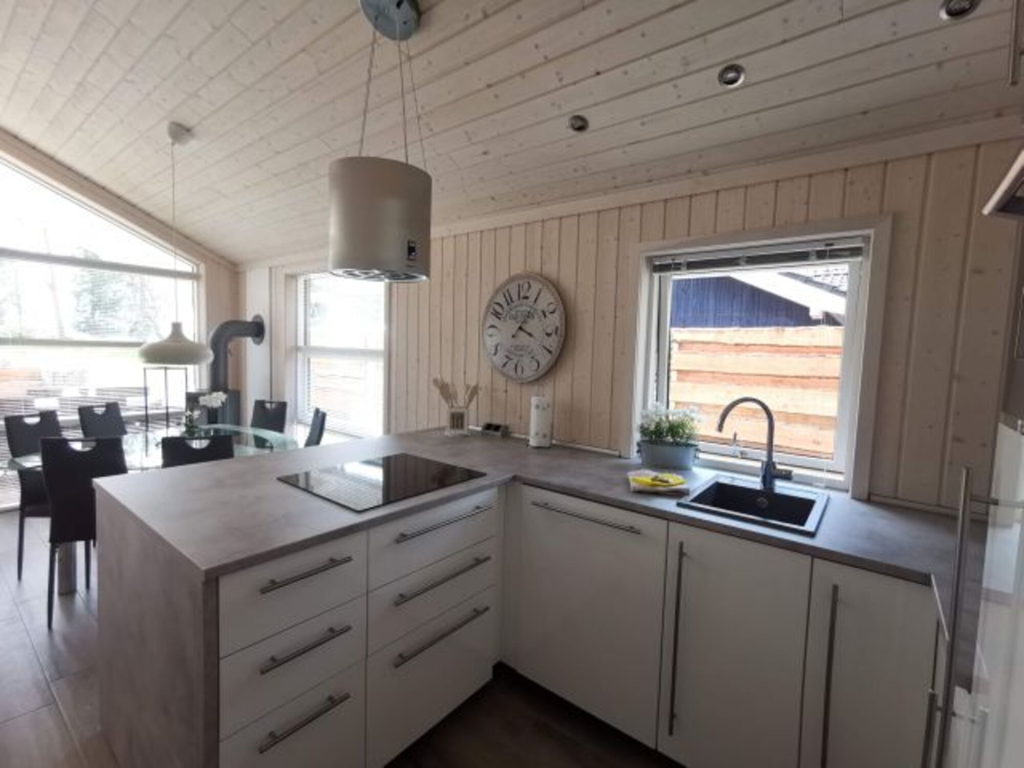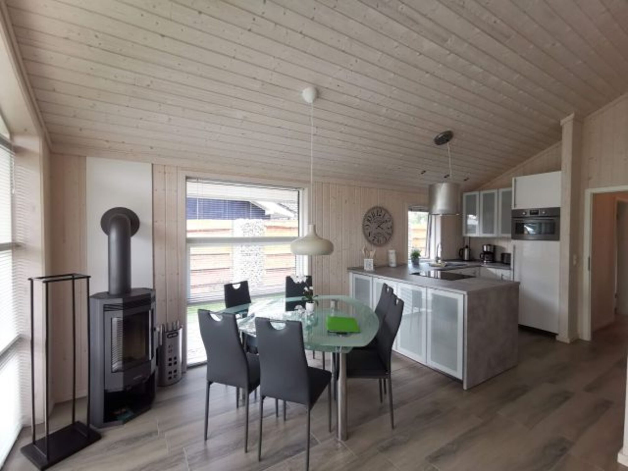 Von der Eckcouch im offen gestaltetem Wohnraum kann man sich dann entscheiden, schaut man auf den 49" LED-TV, auf den Kaminofen bei der Essecke oder hängt man beim Anblick eines spektakulären Sonnenuntergangs seinen Gedanken nach.