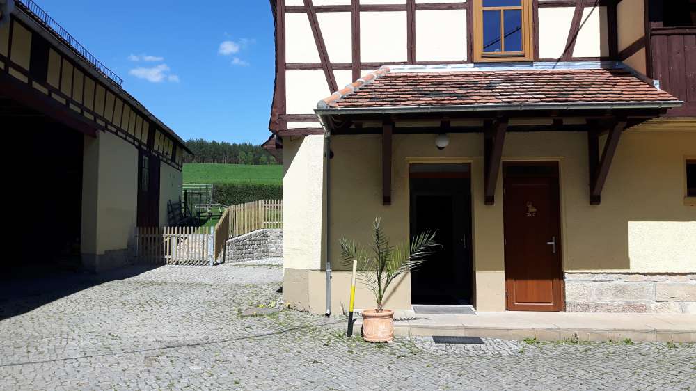 Ferienwohnung im ehemaligen Luftkurort Trockenborn, am Ortsrand gelegen mit eigenem Parkplatz, Innenhof und viel Platz.Nebenan halten wir auf unserem Hof Alpakas, dass ist das Highlight für unsere kleinen Gäste.